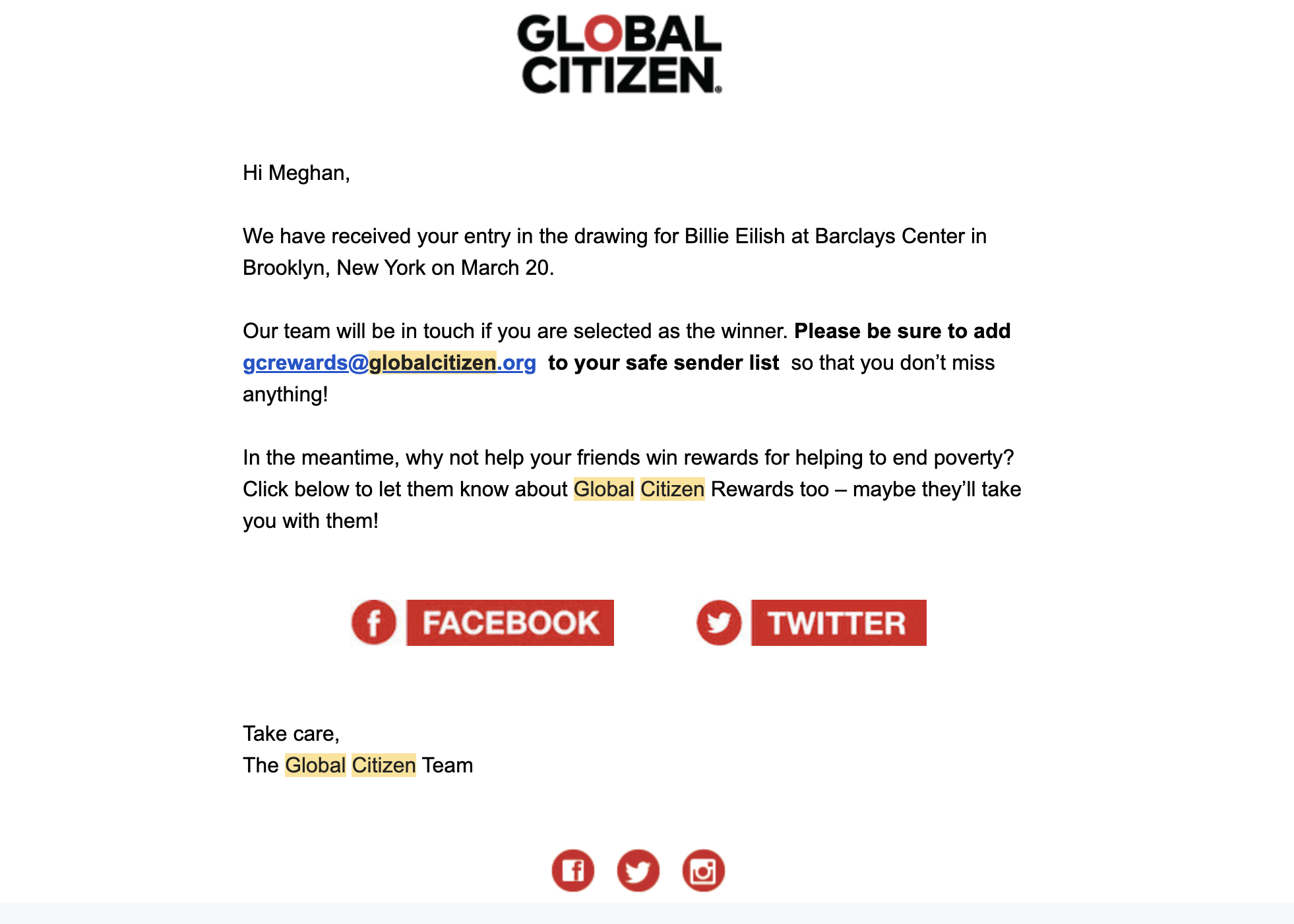 For the first several months of my time with Global Citizen, I focused primarily on the Rewards and Loyalty program. I took a multifaceted approach to the program, focusing first on pitching Global Citizen to potential partners. I worked with the Rewards and Marketing teams to tell Global Citizen’s story. We crafted a pitch that gave a thorough overview of the organization and active campaigns, and connected the GC mission to partners in a way that made them feel valued and eager to join our project.